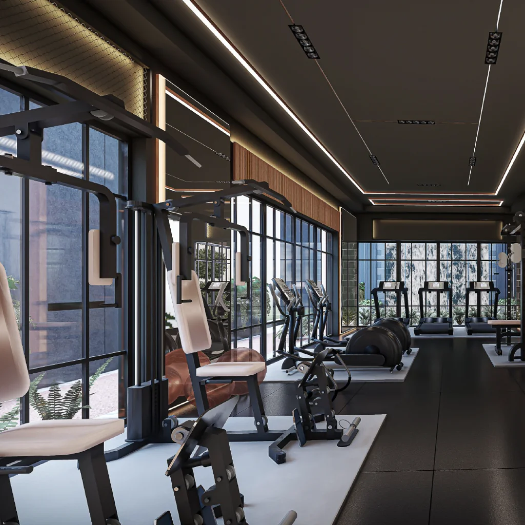 A fully equipped fitness facility supporting strength, conditioning, and routine training — without crowding or noise.